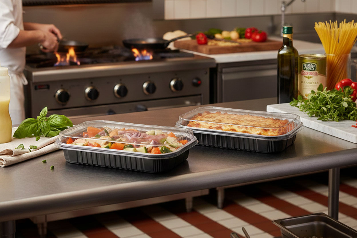 Besonders im Take-away-Bereich sind Aluformen unverzichtbar: Sie halten Speisen lange warm und ermöglichen einen sicheren Transport, ohne dass Soßen oder Flüssigkeiten auslaufen. In Kombination mit passgenauen Deckeln entsteht eine dichte, hygienische Verpackungslösung, die von Kunden geschätzt wird. Auch an der Verkaufstheke sind aluschalen ideal – ob für vorbereitete Gerichte, Beilagen oder Desserts zum Mitnehmen.